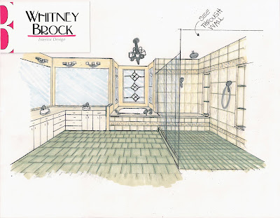 One thing that I love to do for clients is to draw a color rendering of the space. This allows them to see everything together and understand the overall feel of the room. My first rendering I did for these clients allowed us to start a dialogue and adjust the design to better fit their needs. Here is the final color rendering of the new design.
